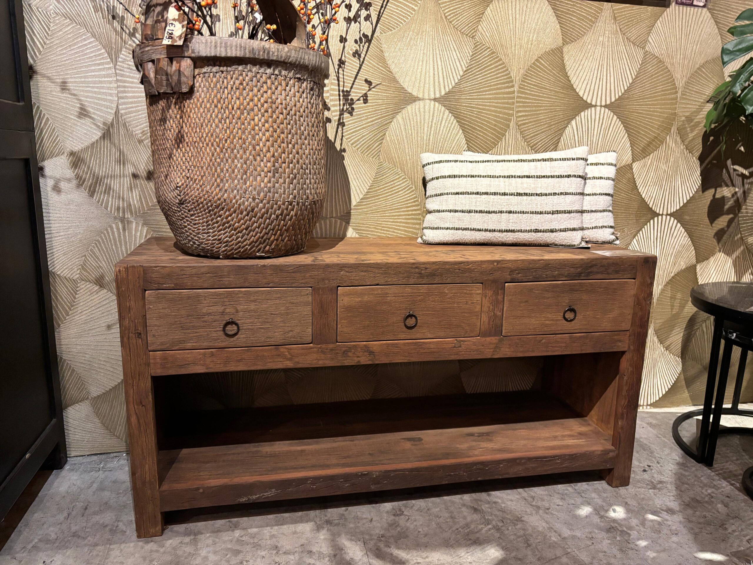 Een stoer, robuust dressoir perfect voor onder jouw TV. Dit TV meubel van primitief oud railway hout is voorzien van een 3 lades en een open vak. Met een maat van 120x40x60 cm is dit meubel een echte eye-catcher in de ruimte.