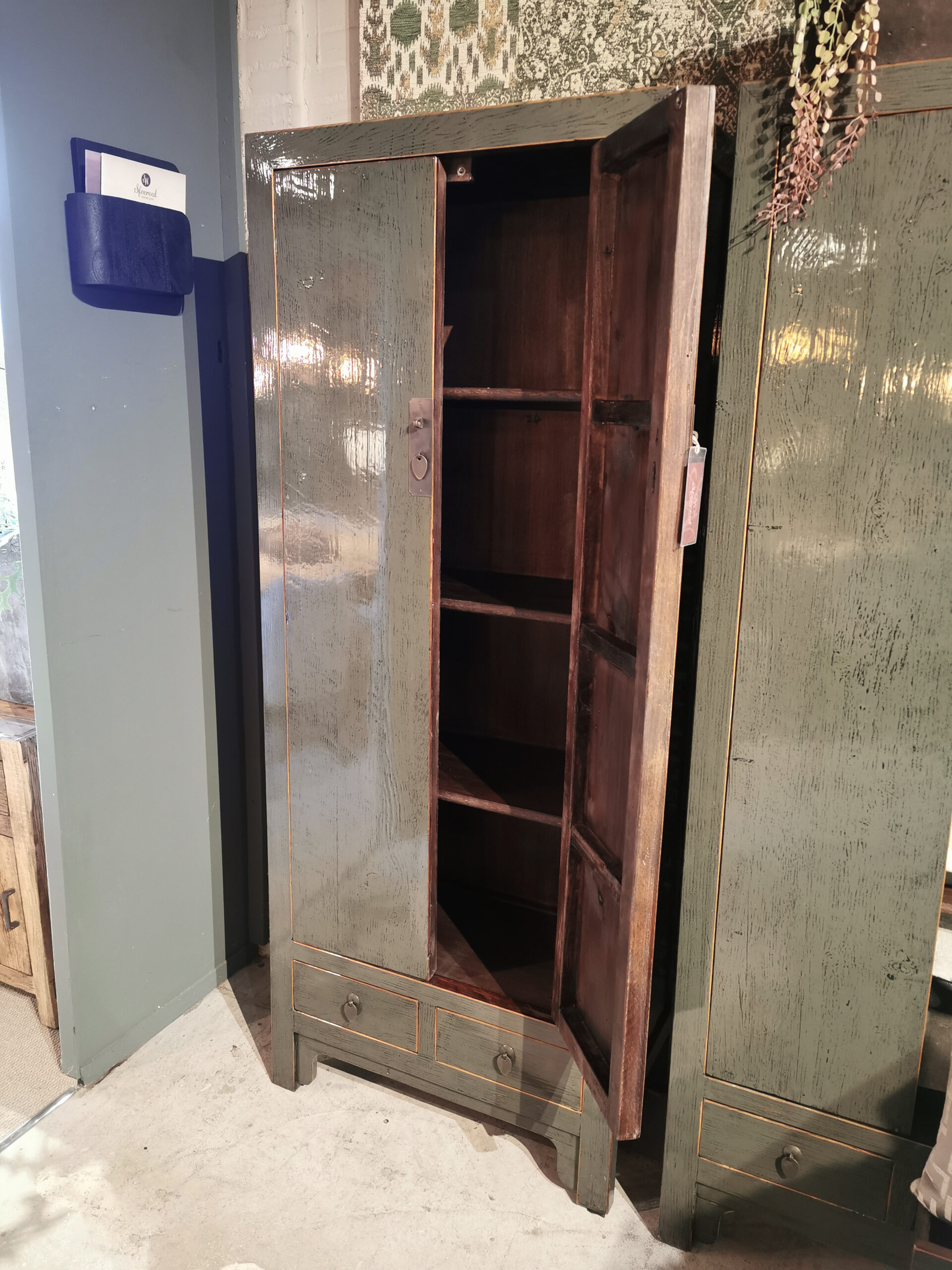 De smalle 2 deurs kast is een meubel met een Aziatische uitstraling voor in bijvoorbeeld jouw woonkamer of slaapkamer. De prachtige details, zoals de unieke kleur, de grote deuren met opvallend beslag en kleine lades, zorgen ervoor dat je uren naar deze kast kunt kijken. De kast is voorzien van een metaal beslag en een warme bruine binnenkant. Het meubel is artisanaal met de hand vervaardigd.