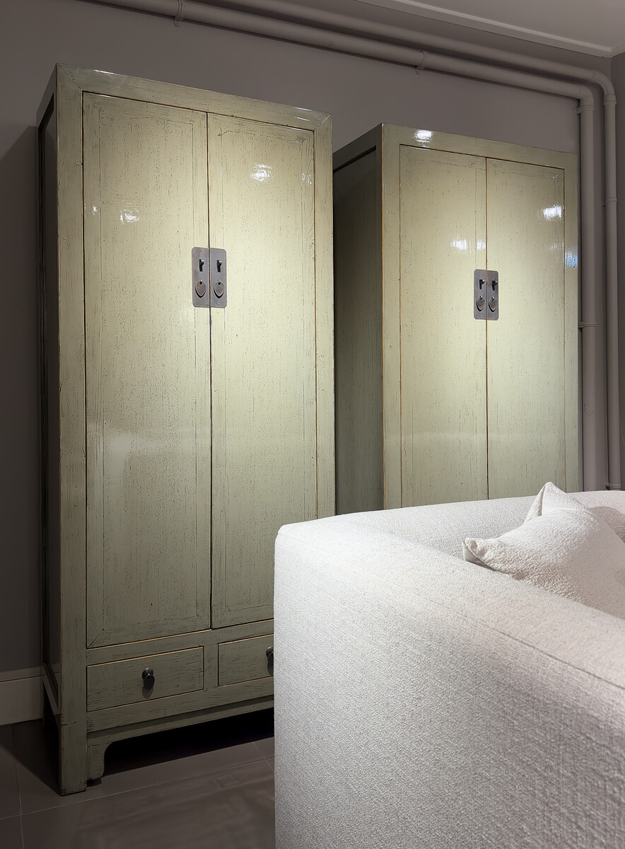 De smalle 2 deurs kast is een meubel met een Aziatische uitstraling voor in bijvoorbeeld jouw woonkamer of slaapkamer. De prachtige details, zoals de unieke kleur, de grote deuren met opvallend beslag en kleine lades, zorgen ervoor dat je uren naar deze kast kunt kijken. De kast is voorzien van een metaal beslag en een warme bruine binnenkant. Het meubel is artisanaal met de hand vervaardigd.