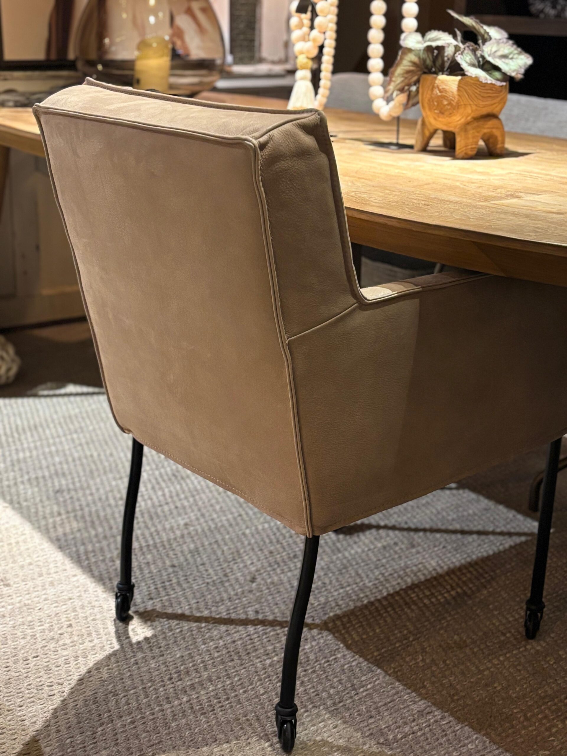 Let op: De prijs van deze stoel betreft de prijs van de eetkamerstoel in Kenia leder (leergroep 5) met zwarte poten met 40 mm wieltjes zoals het showroommodel. Bekijk hieronder de vanaf-prijs of kom langs in onze winkel voor het gehele overzicht van de prijzen.