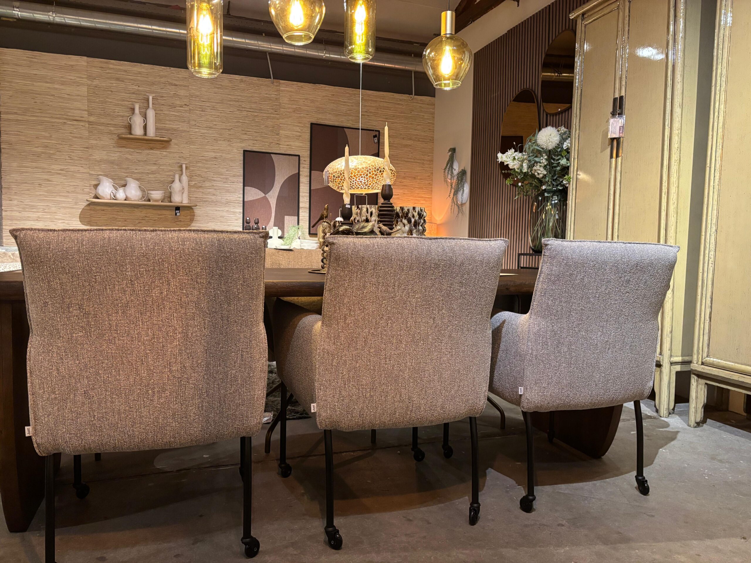 Let op: De prijs van deze stoel betreft de prijs van de eetkamerstoel in Impala stof in een Taupe kleur (12) met zwarte ronde poten en wieltjes zoals het showroommodel. Bekijk hieronder de vanaf-prijs of kom langs in onze winkel voor het gehele overzicht van de prijzen.